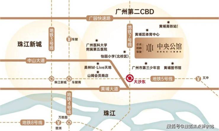 【地铁】5/7号线大沙东站旁,广州地铁黄金大动脉。贯穿天河黄埔。项目到大沙东地铁站步行距离约550米。约半小时内畅达广州各大CBD如珠江新城CBD、琶洲CBD、万博CBD