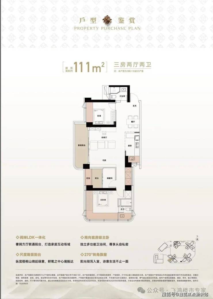 102㎡三房作为项目的入门级产品,采用竖厅格局,LDK一体化设计,让客厅、餐厅、厨房空间流畅连接。值得一提的是,这个户型虽然面积不大,但得房率约94%(含赠送),西北朝向直面梧桐山景,为年轻家庭提供了接触山海生活的低门槛选择。