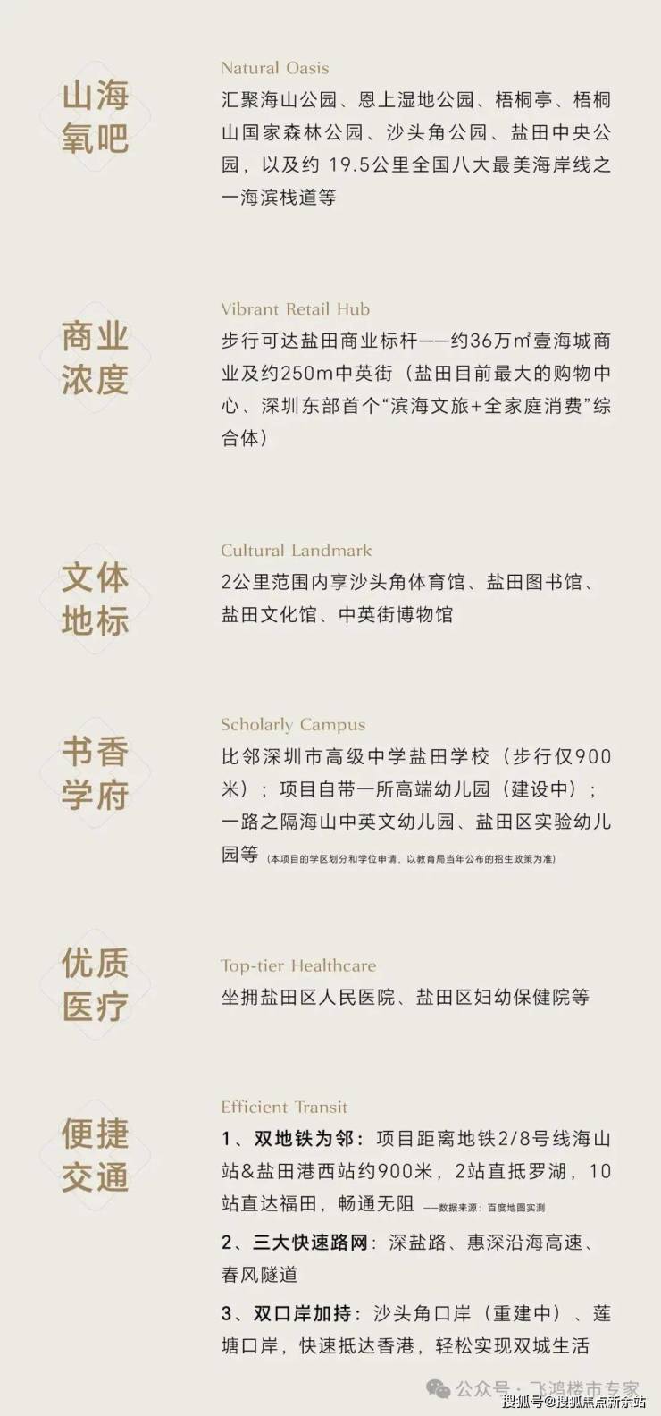 项目配建约2200㎡高端幼儿园,与深圳市高级中学盐田校区直线距离约560米,实现了目送式教育的便利。周边还有盐田区外国语学校、梅沙双语书院等优质学校,形成全龄教育体系。