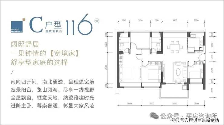 山海丹华并没有结合新规做大的调整,没有加大凸窗到80CM,主要通过凸窗+阳台赠送。