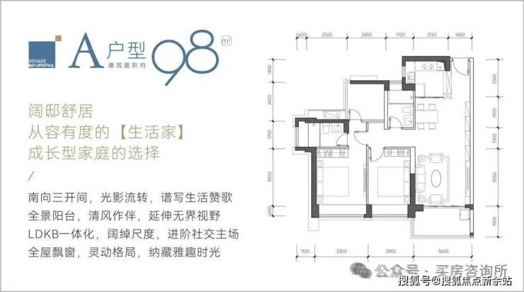98㎡3房2卫:竖厅设计,客厅开间3.6米,主卧3.3米;次卧2.8/2.4米,有个阳台改房,三个卧室都可以做到不需要结合凸窗改床;