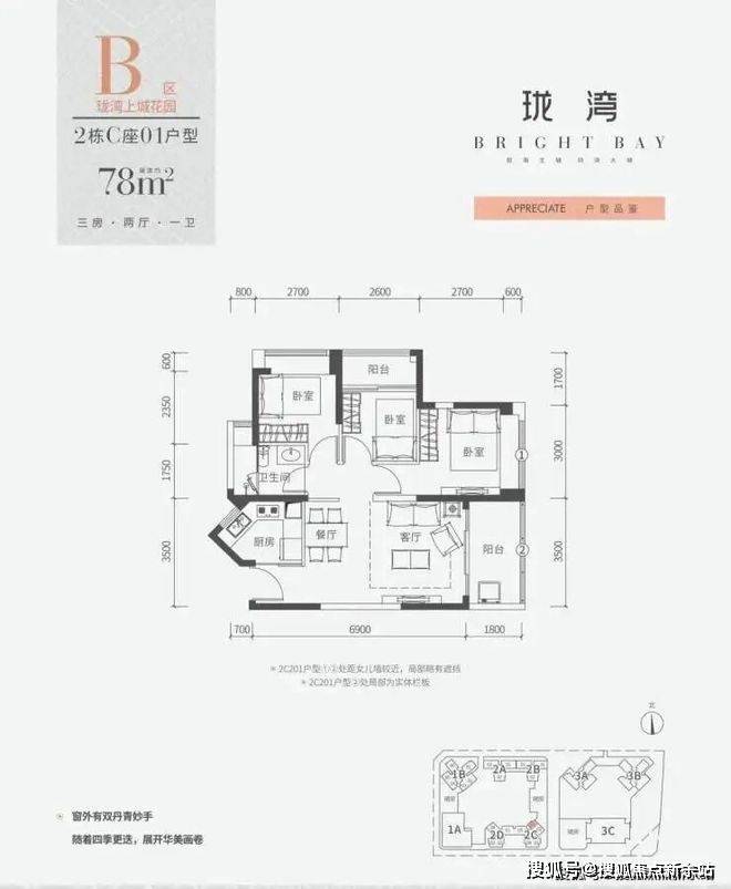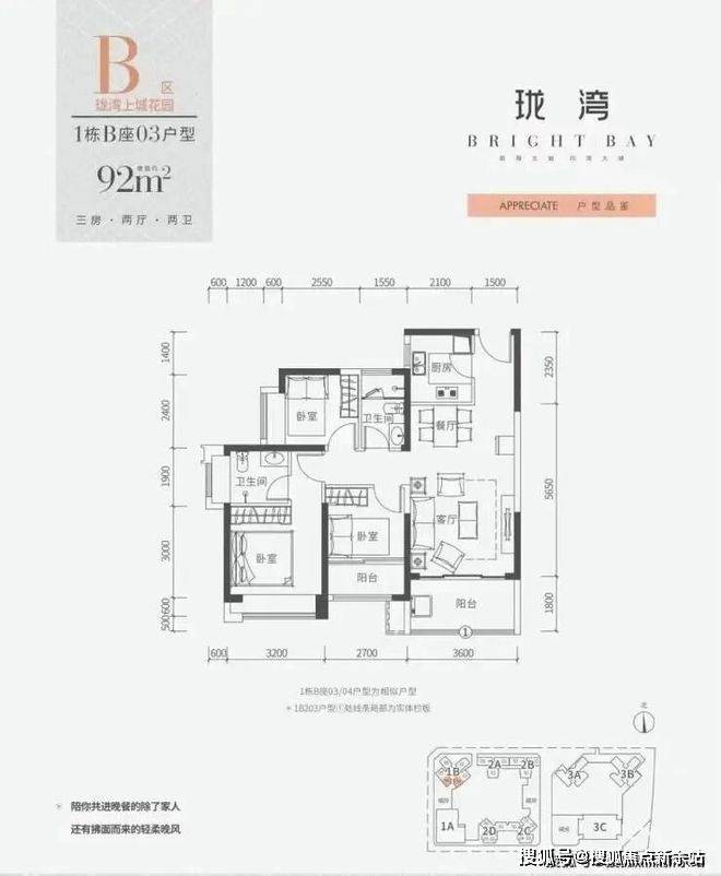 梯户比:1栋B座3梯6户;2栋B座2梯3户;