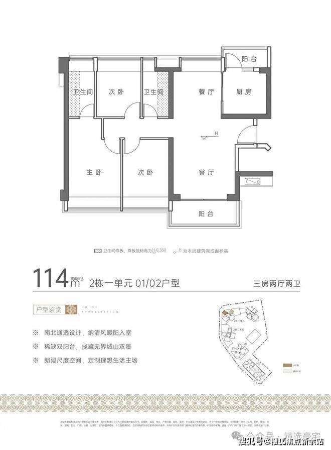 →归心生活:建面约110-133㎡城山双景,南北通透、稀缺双阳台,全系品牌精装,非凡品质臻享