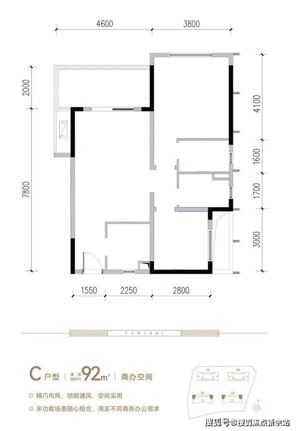 76㎡两房一卫、92㎡两房两卫、94㎡三房一卫