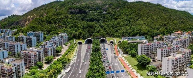 再往前走可到达深中通道,从这里去到深圳大桥人工岛马鞍岛,大桥全长24公里,建成之后从项目开车到深圳只需1.5小时,目前根据建筑进度及官方规划,预计在2024年可以建成通车。2020年6月17日11时45分,历经近34个小时的出坞、浮运、系泊、安装,深中通道沉管隧道首节沉管顺利实现与西人工岛暗埋段对接。