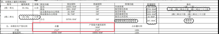 全盘规划377套住宅房源,但可售商品房仅244套,而办公+商务公寓规模近超过6.2万㎡