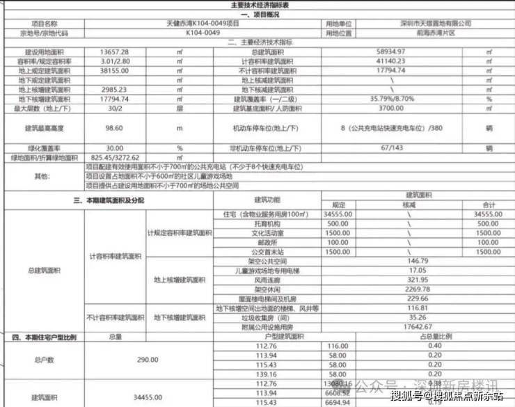 项目用地面积13657.28㎡,容积率仅2.8,建筑面积38155㎡,含住宅34555㎡,其他面积用于物业用房、托育机构和公交站,总户数290户,车位380个。共2栋30层高住宅组成