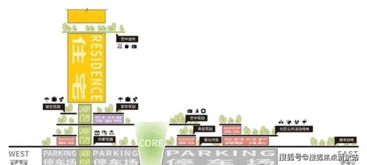 高层住宅的公区设计至关重要。本方案以内部庭院为中心,二层设人行天桥连接休闲区;三层规划户外花园和泳池。