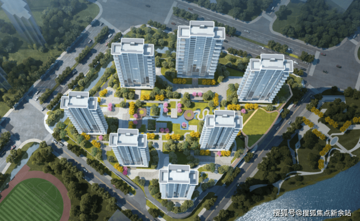 顶层均为23跃24层的顶跃户型,7栋住宅采用围合式设计,钻石型错落分布,实现超百米楼距,户户南向偏东约15°!