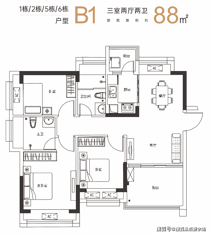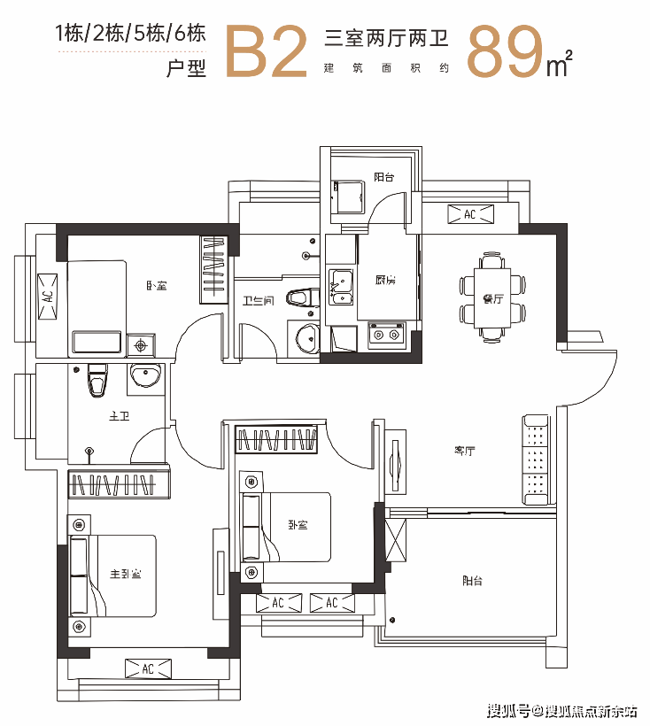 注:72 ㎡两房总价约 152万,89㎡三房总价约 178万
