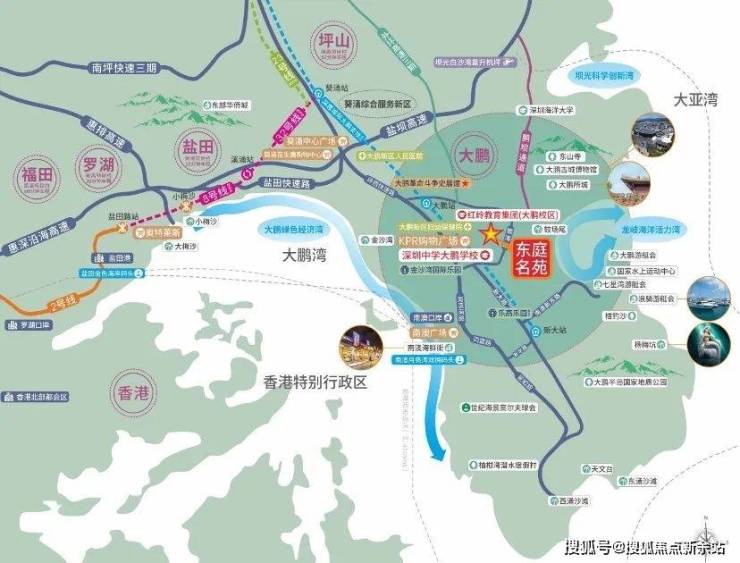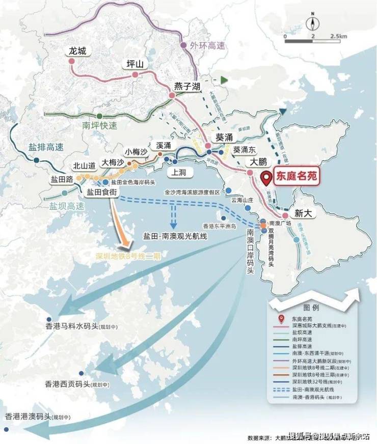 另外在建的深惠城际大鹏支线,可在葵涌站换乘地铁 32号线去深圳市区,也可接驳坪山站,同步换成深大城际。深惠城际大鹏支线,也是定位为交通兼旅游线路,预计 2026年后通车,大鹏站都离项目约 8 分钟车程。南澳双拥码头,正在扩建为南澳口岸,将新设多条航线,建成后大鹏 45分钟可直通香港西贡码头,60分钟可达港澳码头。
