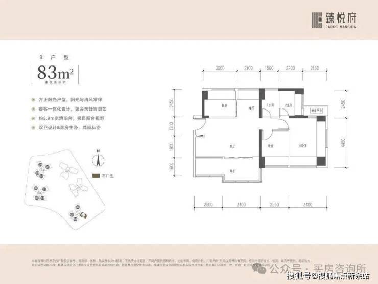宝安松岗,林曦艺境花园,推广名为「璞宸·臻悦府」项目分南北两个地块开发,规划6栋住宅,总户数约693套,其中可售商品房400套,83㎡ 3房2卫,93㎡ 4房2卫