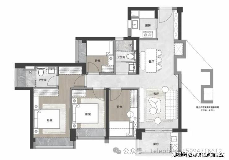 83-85㎡三房二厅二卫:四开间朝南,主卧套房设计,私密性强,适合对生活品质有更高追求的朋友。