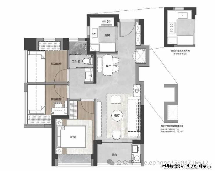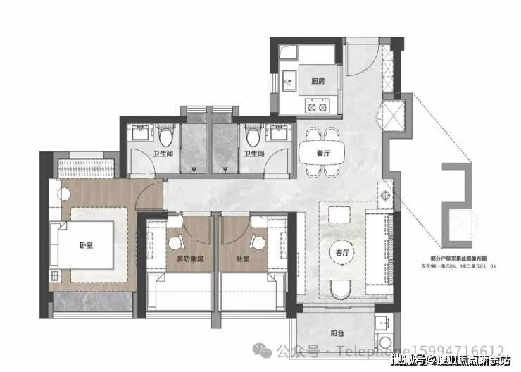 67㎡二房二厅一卫:设计紧凑,东南朝向,通风采光好,适合年轻人上车。