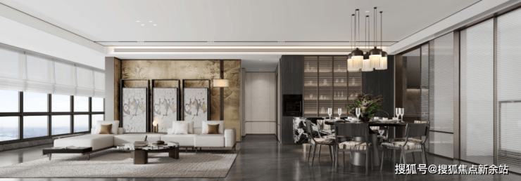 在大师团队的妙笔下,整个项目规划建设7栋塔楼、8栋板楼、15栋叠墅,高层围绕南面的黑白面将军山和南屏水库形成为围合之势,将面宽1000m的湖景和5000m的山景资源最大化,实现建筑与外部环境的融合协调。