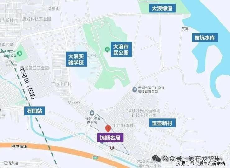 锦顺名居,北靠岭排围村,左邻大船坑市场,右近黄麻埔旧村,南边一路之隔接壤大浪中心区,与规划中的大浪时尚创意小镇相隔不远,特别距离华为在观澜拿下的大宗产业园占地76万㎡地块约6公里左右。