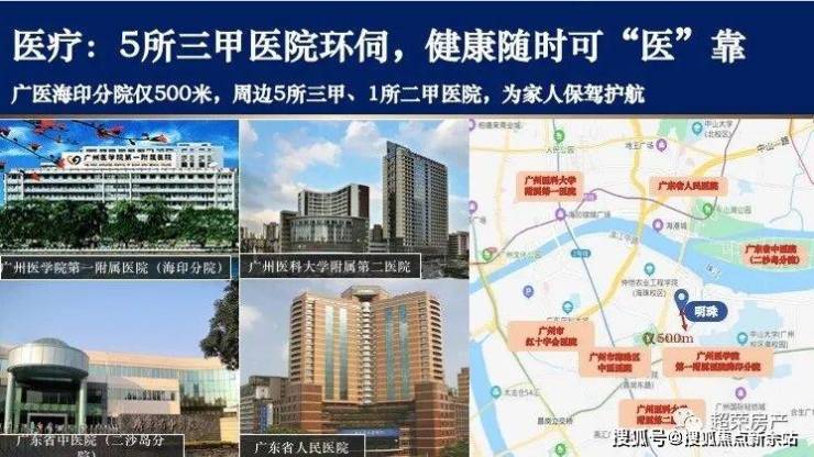 600米内有广州医学院第一附属医院海印分院,1公里有海珠区第一人民医院、广州市海珠区中医医院以及广州医科大学附属第二医院、广州医科大学附属第一医院等。