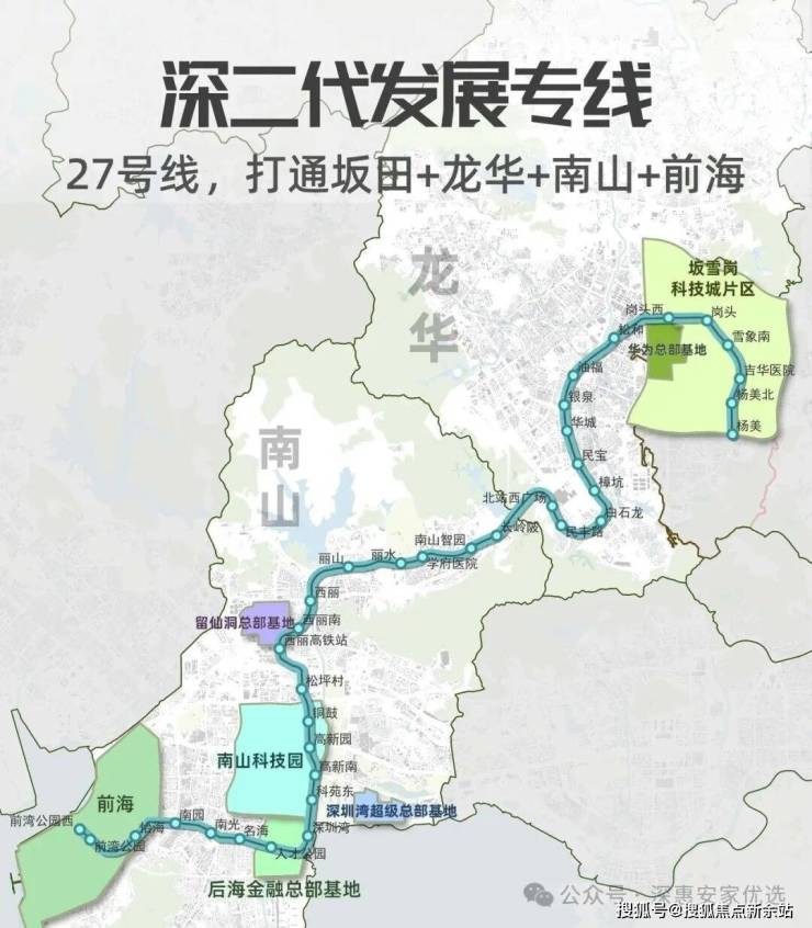 起自松坪南站,终至岗头西站,强化沿线人口岗位密集区的轨道交通服务,支持坂雪岗科技城、深圳北站中心、南山科技园等重点片区发展。