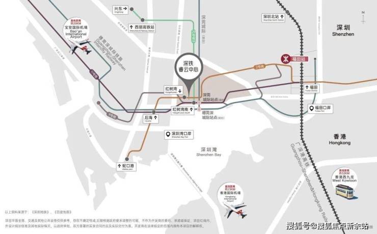 🔘海陆空轨TOD枢纽速联全球商务2/9/11号线三线地铁环绕,紧邻地铁29号线(规划中)及穗莞深、深莞城际轨道,形成6轨6站交通网络。◎海:9站到蛇口湾(2号线)、8站到太子湾邮轮母港(11、12号线)◎陆:3站到深圳湾口岸(11、13号线),6站到福田口岸(11、1、4号线)◎空:6站到宝安国际机场(11号线)◎轨:2站到高铁福田站(11号线),11站到深圳北站(11、1、4号线)