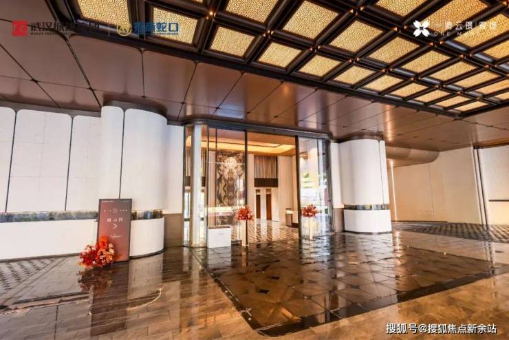 社区入口以天然石材构筑约40米超尺度门庭,恢弘气势扑面而来;前广场叠水景观与仿紫铜照壁相映成趣;艺术回廊吸顶灯设计灵感源自巴黎爱马仕总店,光影流转营造仪式落客空间;车库坡道灯光随行渐次点亮,多维空间尽显尊崇。