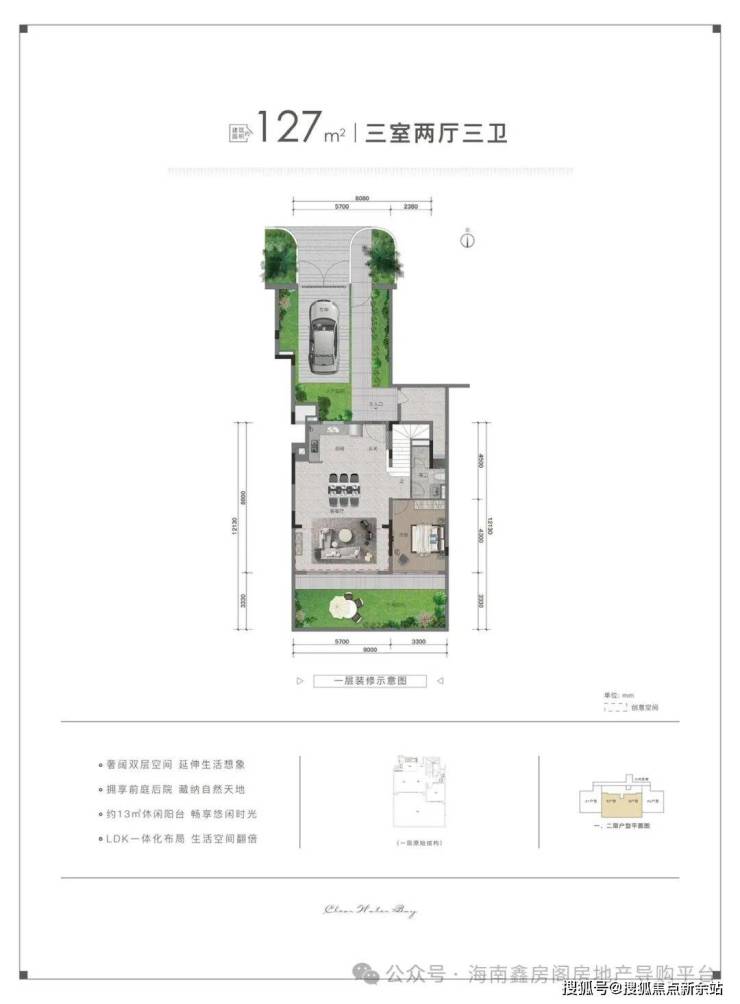 建筑面积:127平,使用150平,花园70-90平