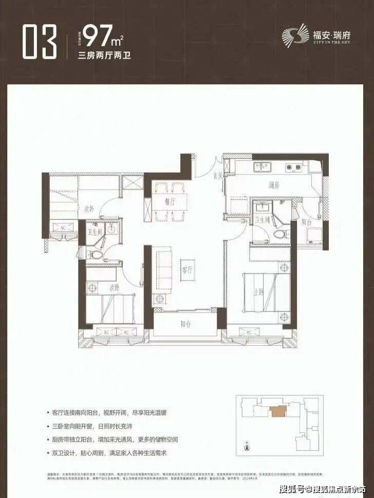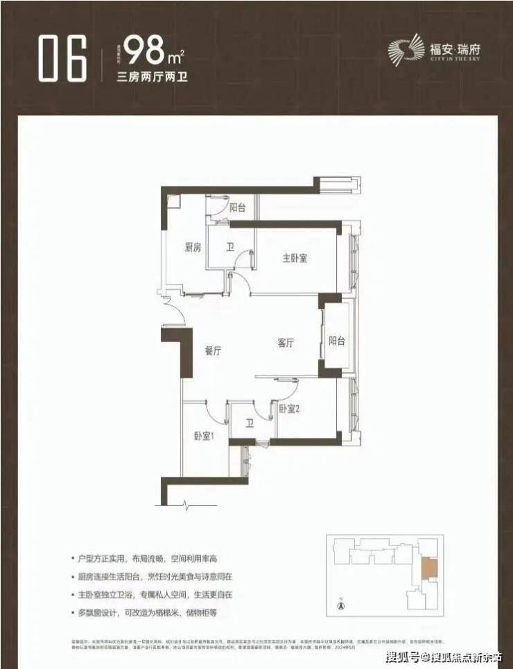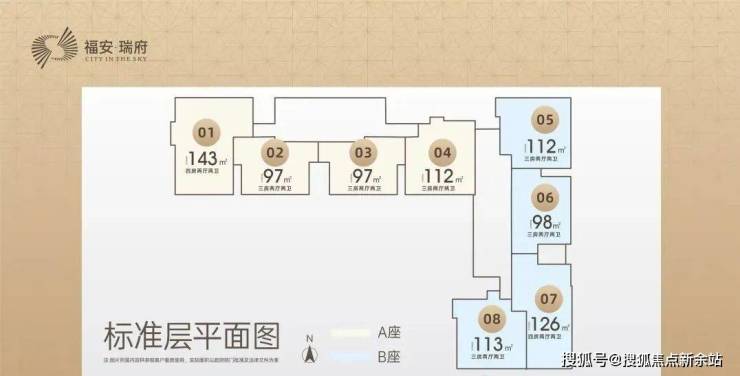 福安瑞府户型图已经公示,主推建面约97-98-112-126-143㎡的3-4房产品。