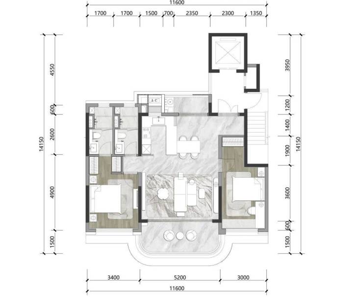 建面积约105㎡户型,打破常规105平三房的户型格局
