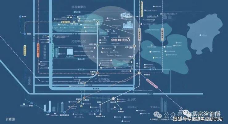 项目北侧即星河、华侨城光明旧糖厂城市更新片区,连接北面的光明CBD科学公园、科学方舟地标商务集群。