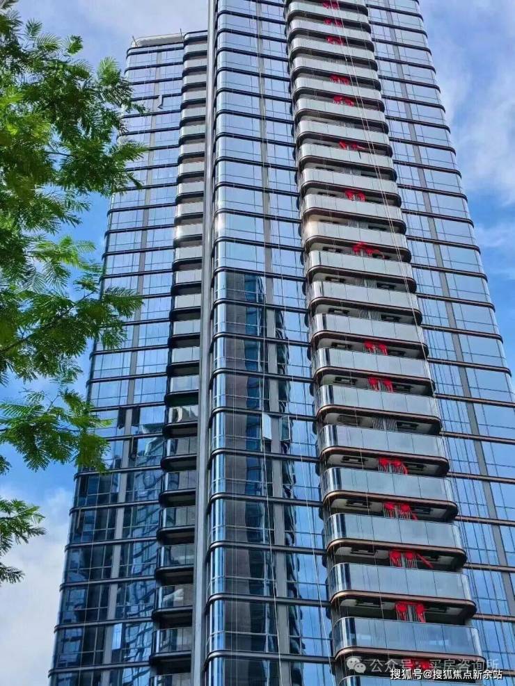 外立面使用涂料、石材、玻璃、铝板、金属线条等高端建筑材料,是光明外立面率先使用”弧形元素设计“景观阳台的住宅项目之一。