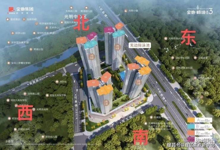 金地峰境誉府项目位于光明中心区 翠湖公园 东南侧,同时坐标光明中心区CBD,紧邻 6号线地铁口,东侧是 “光明版深南大道” 光侨路,一路之隔就是 “光明最大的生态公园”、平时遛娃摘草莓很方便的 光明小镇,金地峰境誉府,是集 商务+居住+生态 于一体的都市核心区。