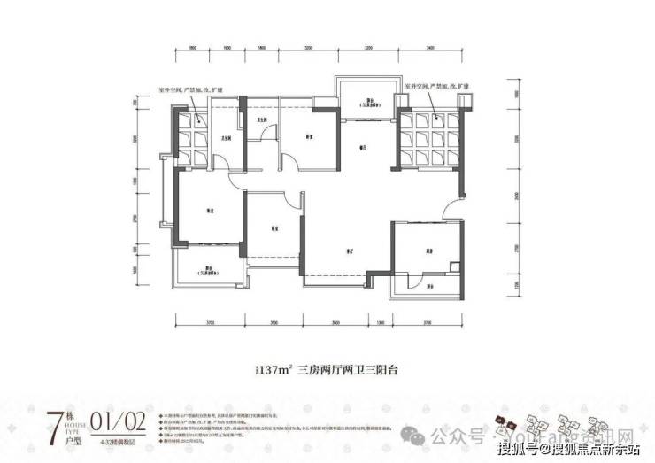 4栋EF户型奇数层128㎡ 三房两厅两卫五阳台