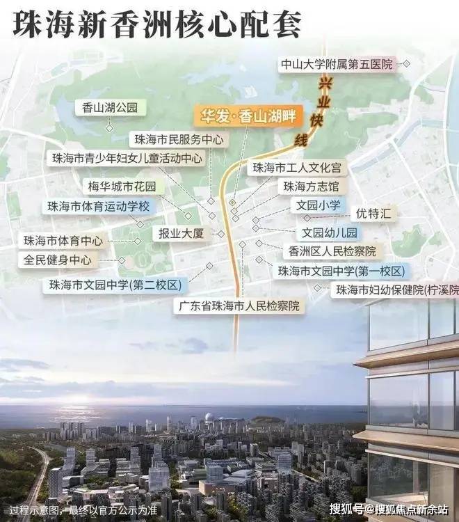 华发香山湖畔位于珠海中心区主轴之上,主城高端居住区所在,为珠海市区最后的超高层住宅,约180米超高天际封面作品。项目周边珠海市体育中心、方志馆及工人文化宫、市民服务中心、香山湖公园等重量级配套,触手可及。值得一提的是,其位处公立教育学府高地,众多名校环绕,约800米内拥有文园小学、文园中学、文园幼儿园,“三文园”环绕,坐拥珠海家长圈最想“挤入”的学区之一。