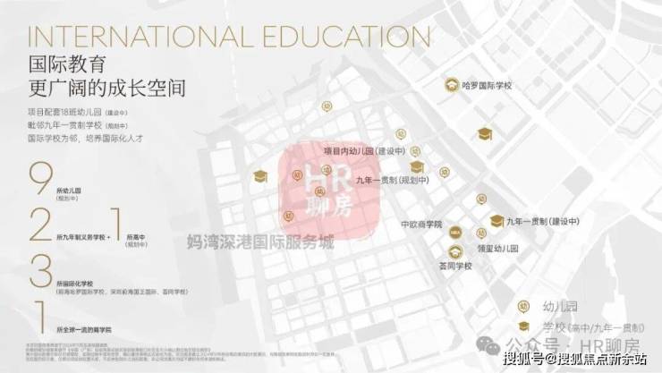 学校:项目楼下配备18班幼儿园和9年制学校,距离800米有公立前海创新集团妈湾学校(预计今年9月开学),国际学校:哈啰公学和妈湾荟同学校,以及片区还带有亚洲顶级成人工商学院“中欧商学院”,满足全年龄段教育;