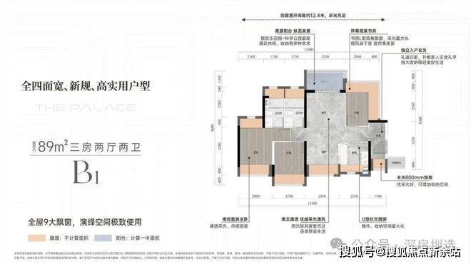 【B1 启创 】「建面约 89m²三房两厅两卫」