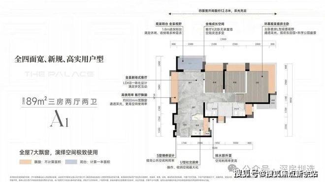 【A1 启创 】「建面约 89m²三房两厅两卫」
