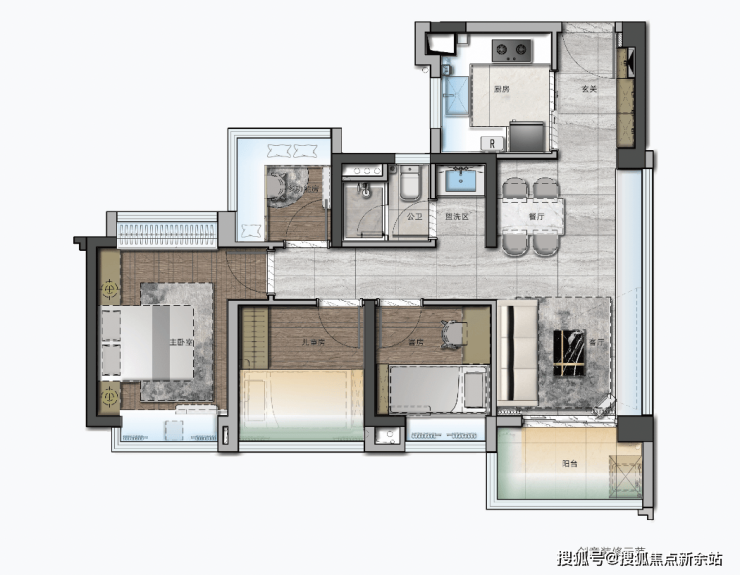 这个户型,有更富足的卧室面积,更加适合三胎进阶型家庭或者三代同堂。