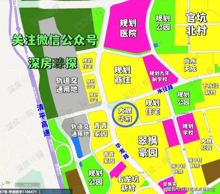 交通配套:大靓华府紧邻清平高速入口(500米),自驾30分钟可达福田;现有地铁5号线“下水径站”距离约1.5公里,需公交接驳;1公里内有10个公交站,覆盖5条地铁线(含3、14、10号线换乘),地铁25号线(规划中)设“水径西站”距项目仅200米,建成后可串联坂田科技城,但建设周期未定。