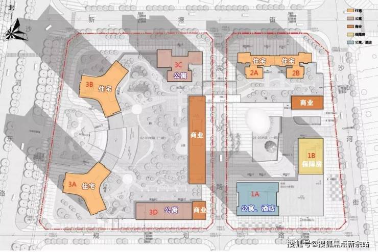 总栋数:8栋(1A栋42层酒店+公寓、1B栋28层保障房,2栋1/2单元41层住宅,3A/3B栋69层住宅;3C栋50层公寓、3D栋4层公寓)