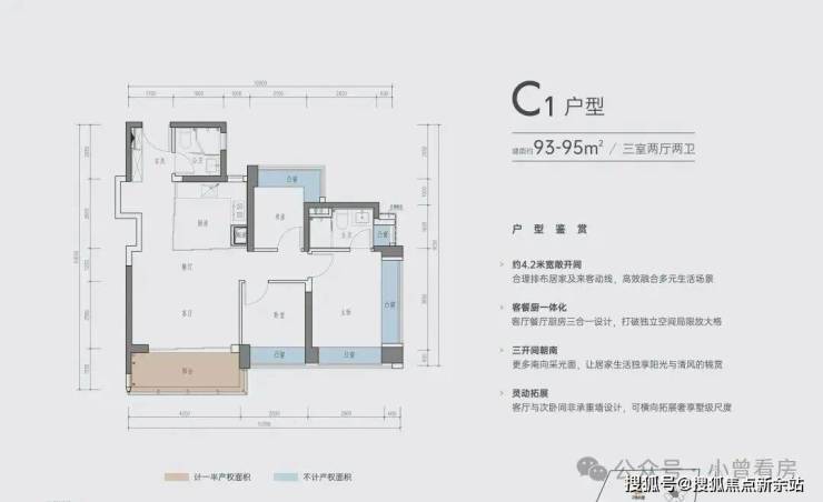 C-1户型 | 建面约93-95㎡三室两厅两卫