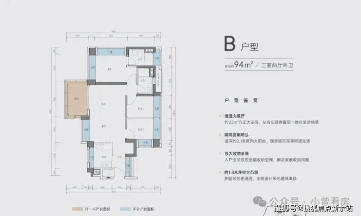 B户型 | 建面约94㎡三室两厅两卫