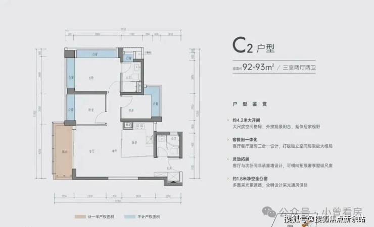 C-2户型 | 建面约92-93㎡三室两厅两卫