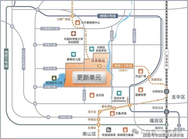 而地铁13号线是光明未来价值最高南北地铁线路,中途连接西丽留仙洞总部,深圳南山科技园,最终连接到深圳湾一带。