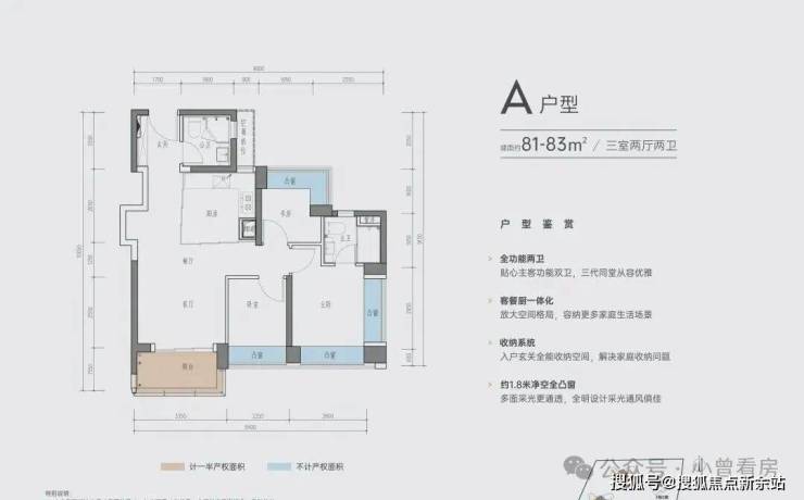 A户型 | 建面约81-83㎡三室两厅两卫