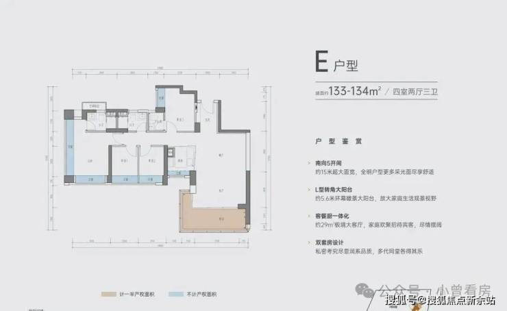 E户型 | 建面约133-134㎡四室两厅三卫