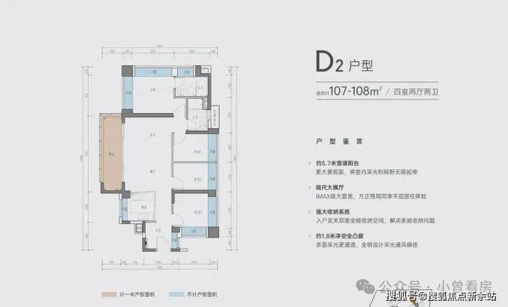 D-2户型 | 建面约107-108㎡四室两厅两卫