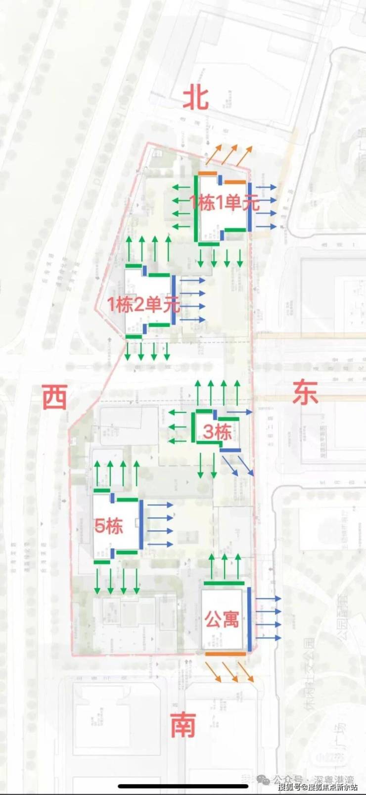 沄玺花园景观聚焦东侧,面向深圳湾人才公园,采用“全向东”布局策略。