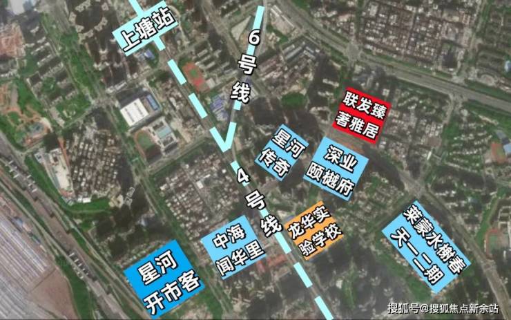 距离4号线上塘站1.1公里、4/6号线交汇红山站1.6公里左右。1站可到深圳北站,可以换乘5号线,也可以乘坐高铁通往其他城市。还有预计2026年开通的深大城际,规划中的27号线华城站距项目1公里左右。