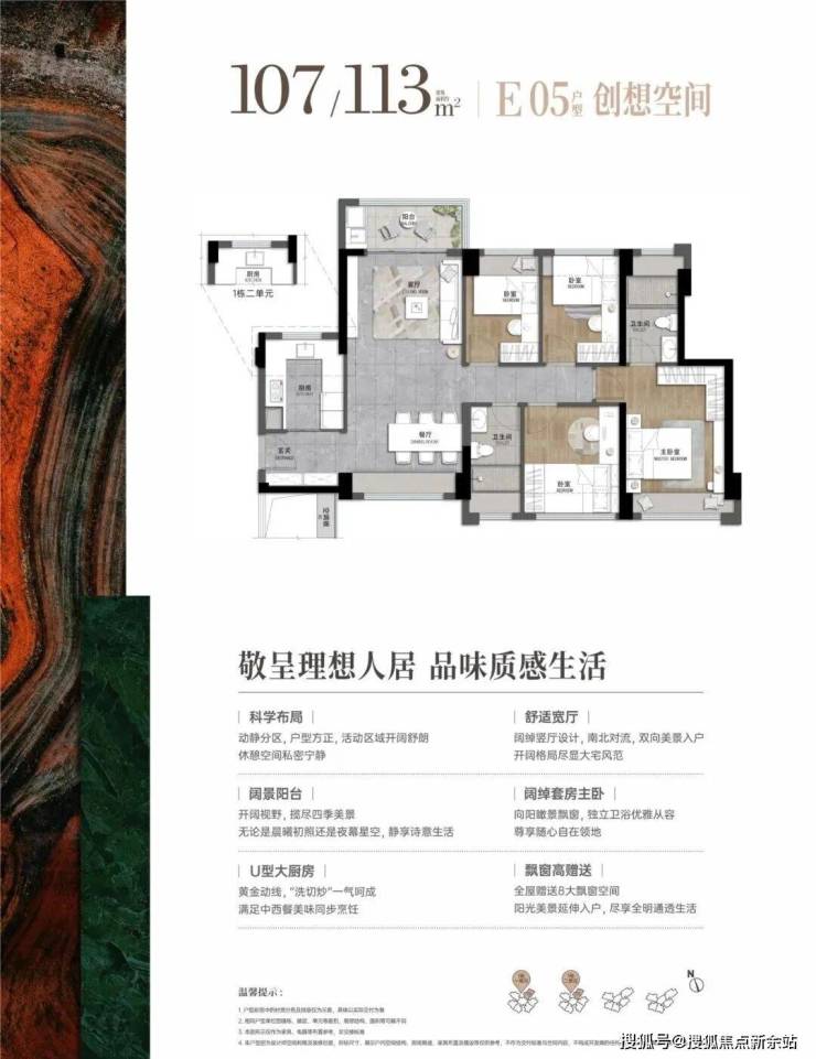 107-113平:4房2厅2卫,套内净使用率在80%,南北通透