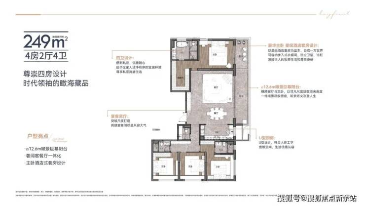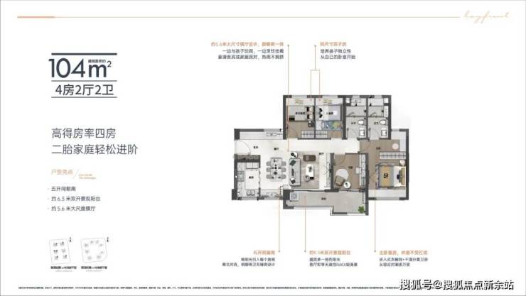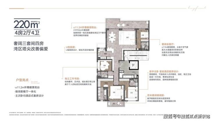 约140㎡:4房2卫,横厅+观景阳台,尺度开阔。