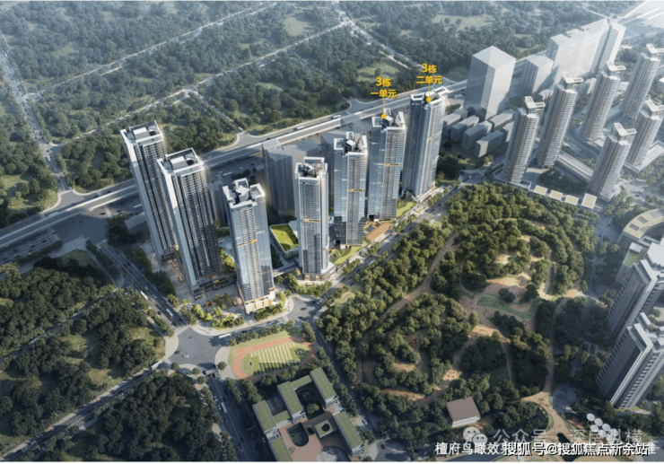 南北向点式排布,保证每栋每户通风采光,东向无遮挡公园景观视野